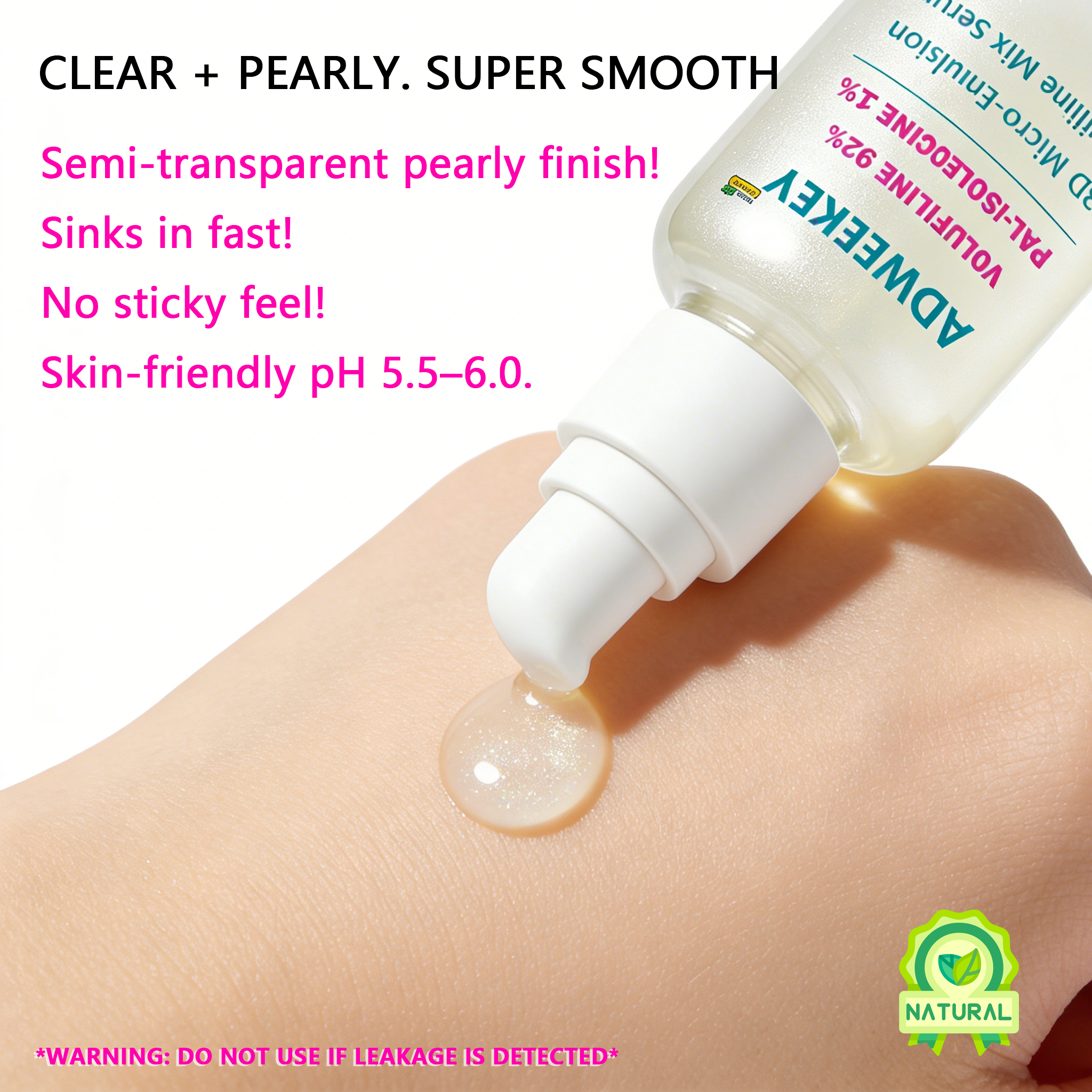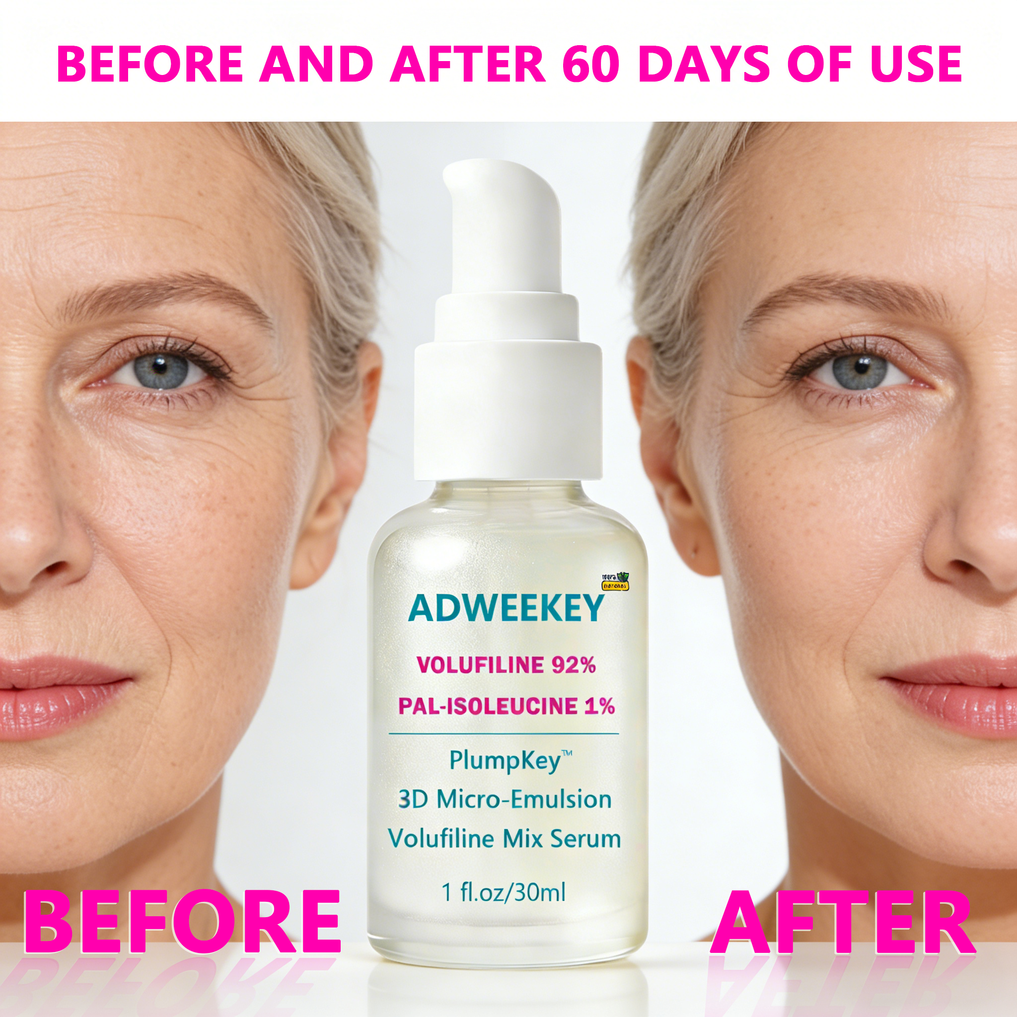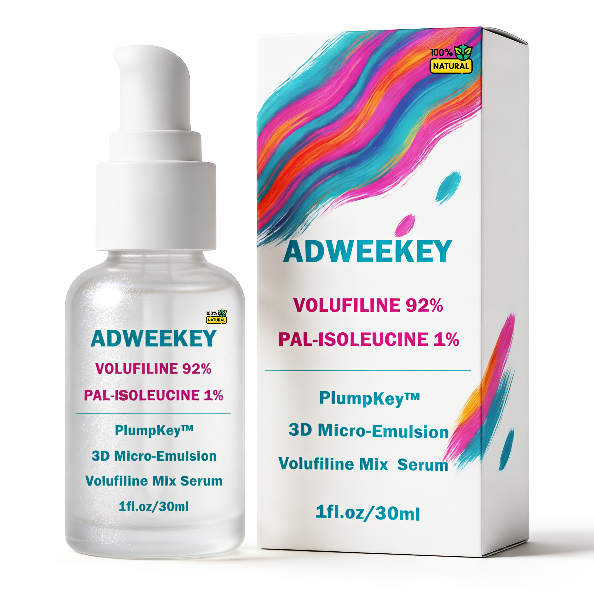 Meet your new “bounce booster” for everyday skin goals. ADWEEKEY Volufiline 92% + Pal-Isoleucine 1%+Beta-Glucan Serum is made with PlumpKey 3D Micro-Emulsion texture—lightweight, smooth, and easy to layer. It’s designed to help skin look plumper, softer, and more elastic, while keeping the finish comfortable (no greasy shine, no sticky film). Why you’ll love it Plump-looking glow: Supports a bouncy, healthy-looking appearance Comfort hydration: Beta-Glucan helps soothe the look of dryness Makeup-friendly: Sits nicely under moisturizer and makeup Airless pump packaging: Clean dispensing + consistent dosing How to use After cleansing, apply 1–2 pumps to face and neck AM & PM. Follow with moisturizer. In the morning, finish with sunscreen. What’s inside Volufiline 92% Pal-Isoleucine 1% PlumpKey 3D Micro-Emulsion Beta-Glucan Serum Size: 1 fl oz / 30 mL (airless pump) Disclaimer: Cosmetic product for external use only. Avoid direct contact with eyes. Patch test before first use. Discontinue use if irritation occurs. Results may vary.